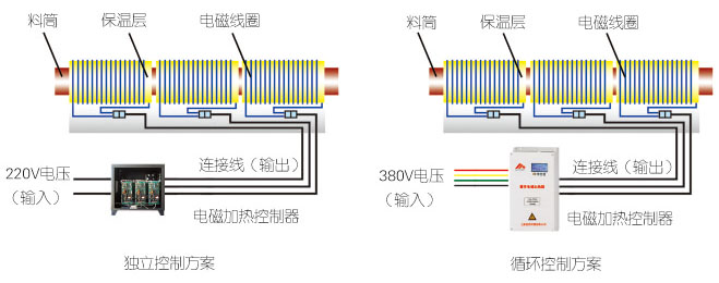 節(jié)能電磁加熱是通過把電能轉(zhuǎn)換為磁能,使被加鋼體感應(yīng)到磁能而發(fā)熱的一種加熱方式。它從根本上解決了電熱片、電熱圈等電阻式通過熱傳導(dǎo)方式加熱的效率低下的問題。 產(chǎn)品特點(diǎn) (1)節(jié)能效果好,相比原電阻絲加熱圈節(jié)電30以上,節(jié)電效率可達(dá)百分之七十五。 (2)環(huán)保效果好,熱量耗散少,表面可用手觸摸,創(chuàng)造個(gè)良好的工作環(huán)境。 (3)使用壽命長(zhǎng),加熱圈連續(xù)運(yùn)行溫度只有1000C左右,不存在加熱圈更換問題。 (4)可提高產(chǎn)品產(chǎn)量,由于該產(chǎn)品的發(fā)熱效率高,能顯著減少升溫時(shí)間,提高產(chǎn)品產(chǎn)量。 (5)性能可靠,故障率低:品質(zhì)優(yōu)良、高度自動(dòng)化、無須人工調(diào)節(jié)。 (6)加熱無明火,適合易燃易爆環(huán)境使用,提高化工,原油等行業(yè)加熱。 (7)預(yù)熱速度快,對(duì)液體、氣體容器管道迅速進(jìn)行升溫。 (8)加熱上限遠(yuǎn)遠(yuǎn)高于電阻式加熱器,可對(duì)金屬瞬間加熱至高溫狀態(tài)。